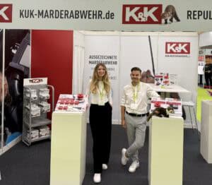 The Automechanika Frankfurt ended on 15 September after five days with a record attendance at exhibitors and a new area record. In total, around 136,000 trade visitors came from 181 countries. K&K participated for the first time as an exhibitor and used the trade fair for many discussions with interested parties and customers from various countries. The visitors already “stumbled” on entering the hall 3.1 over the cute marten, who unmistakably showed the way to the marten defence experts from Oftersheim at the end of the escalator.