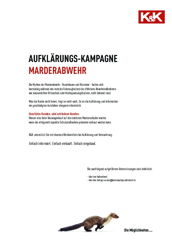 Skoda – Simply clever. Nun gilt es aber auch, cleverer als der Marder zu sein. Eine schlaue Gegenstrategie sind in jedem Fall die offiziell bei allen Škoda-Autohäusern und -Werkstätten angebotenen, unten aufgeführten K&K Marderabwehr Produkte für Skoda Autos. Um einen vollumfänglichen Marderschutz zu garantieren, informieren Sie sich bei Ihrem Ansprechpartner vor Ort. Neben der Marderabwehrgeräten führen wir auch Anti Mardersprays und Marderstäbchen. Sie erhalten alle Produkte bei Ihrer Skoda Werkstatt vor Ort.